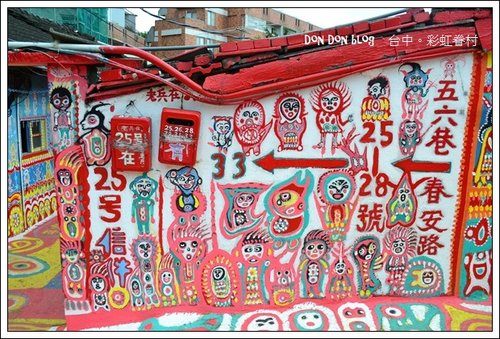 瞧~住家門口上的手寫住址及彩繪娃娃,豐富的色彩,活躍的配色,讓人激賞,