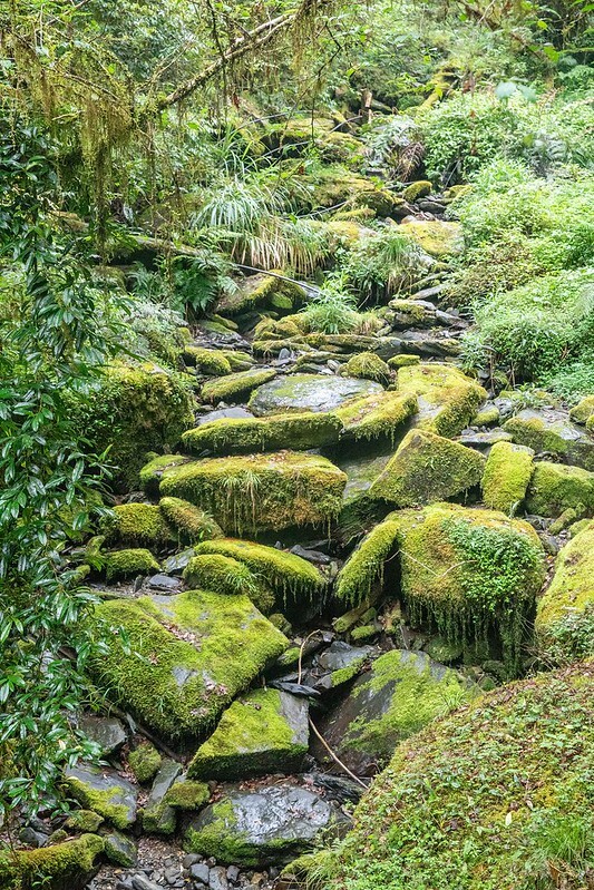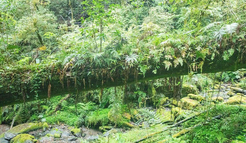 分岔的上坡路段也在盡量不破壞生態下建了木階棧道,方便遊客行走,也預防遊客迷路或是走進林間,過度踐踏自然生態,每隔一小段就會有一處可供休息的小平台,甚至是木椅供遊客喘口氣,略為休息。唯一要注意的是,這些木造的階段,難免有一些青苔,特別是雨後會有一點滑,上下千萬要留意腳步,最好能穿上比較防滑的鞋子。