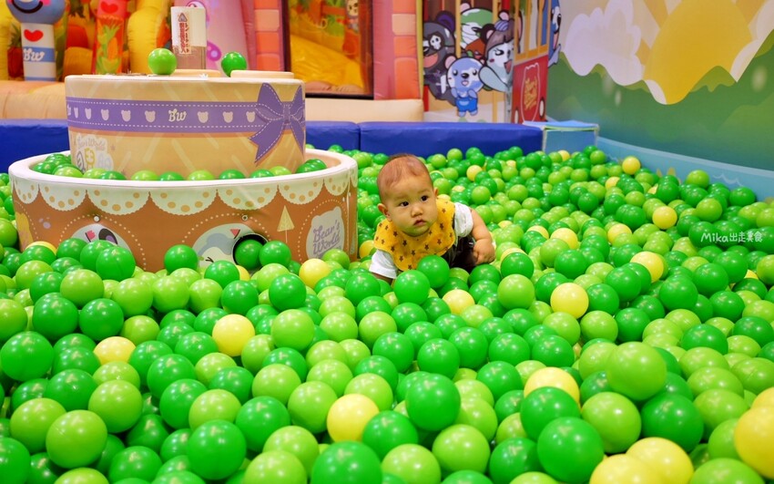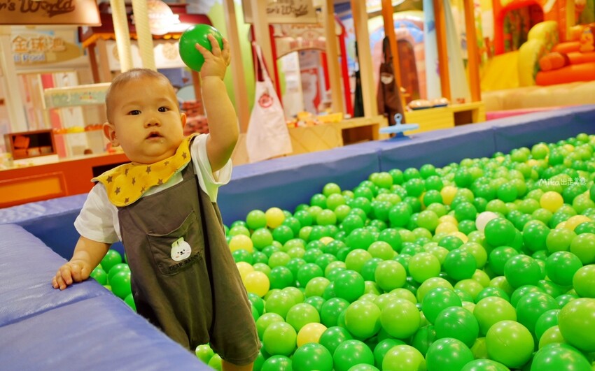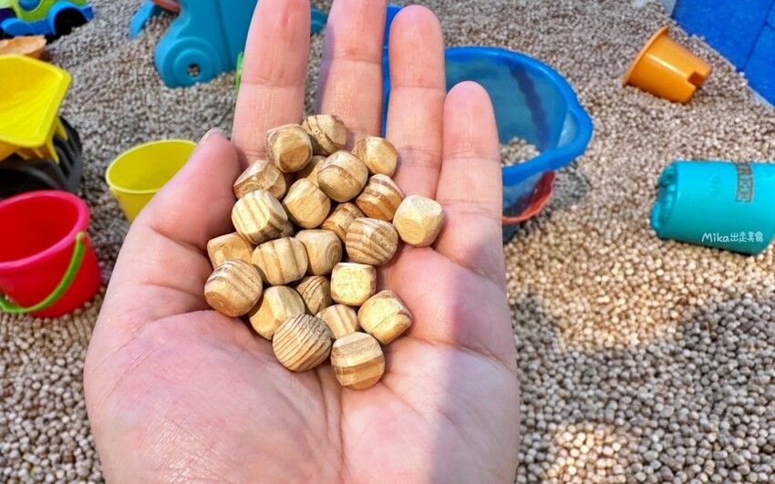 坦白說寶寶還小,能玩的其實很有限,不過邁阿密沙灘用的是小木球當沙灘,玩起來不怕髒真的還不錯,只是就怕寶寶拿起來吃,所以媽媽需要陪玩喔,當然稍微大一點的小朋友就沒這個顧慮了。