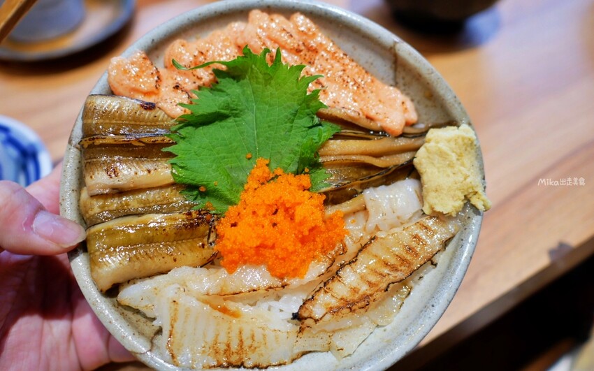 而我剛從福岡回來,還在迷戀明太子中,因此選擇了有滿滿明太子醬跟我愛的星鰻、比目魚鰭邊肉、蝦卵一起的炙燒明太子星鰻鰭邊肉丼。