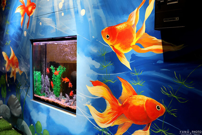 今於朝食&今於串燒酒食以金魚為主題 並搭配金魚櫥窗 招財的橘紅色金魚超級療癒的