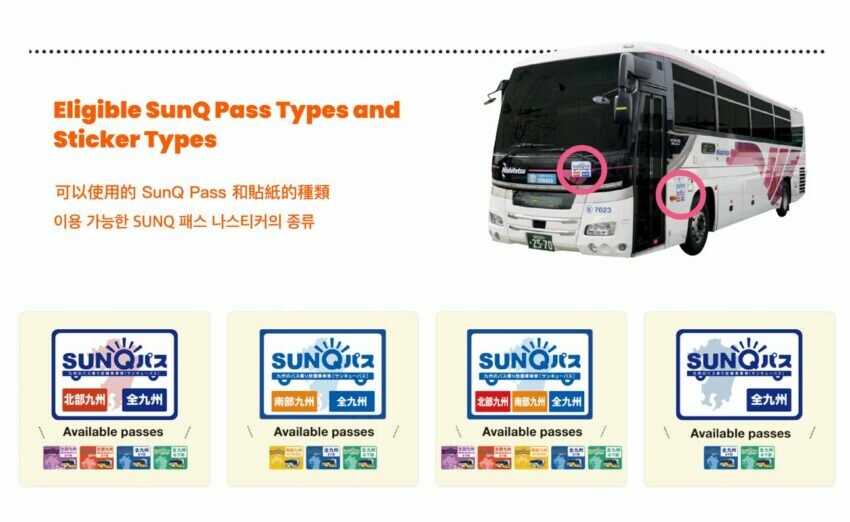 | 適用範圍 | 全九州+山口縣下關、長門高速巴士、市內公車巴士、6條船舶航線 | 福岡、佐賀、長期、大分、熊本+山口縣下關、長門的高速公車巴士、市內公車、5條船舶航線 |