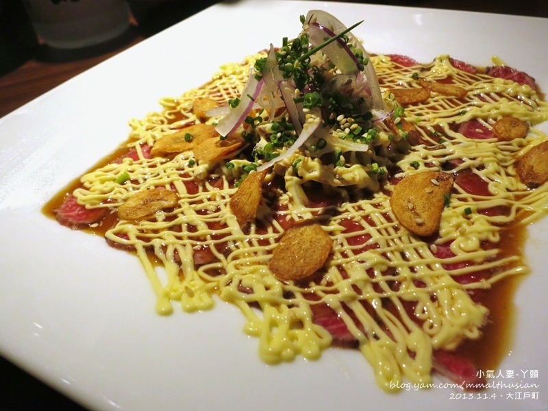 為維炙燒過的生牛肉 加上帶點鹹味的日是美乃滋