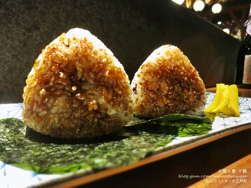 大江戶町的烤飯糰是抹上有點甜鹹得醬汁下去考