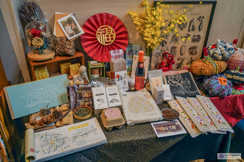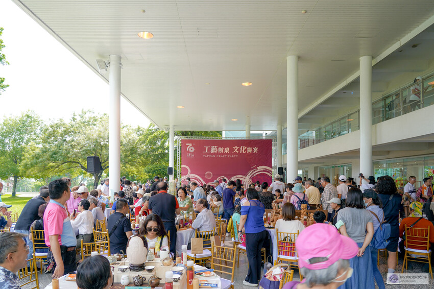 以台灣辦桌的傳統文化,每桌都有一個工藝師的作品,以“工藝下午茶”的方式,分享自己的工藝作品,藉以活絡工藝產業,真的是相當熱鬧~