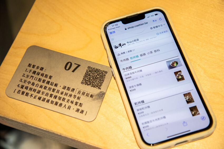 來到牛山清燉牛肉麵先找座位坐,然後掃桌上的QR碼點餐,點餐系統相當直覺,點好餐後再到點餐機付錢拿號碼牌,等叫號自取餐點,料理品項都不多,但牛山清燉牛肉麵就是走一個『專精』路線,第一次來建議點招牌清燉牛肉麵、藤椒乾拌麵跟招牌燒肉飯,小菜就隨自己喜好吧
