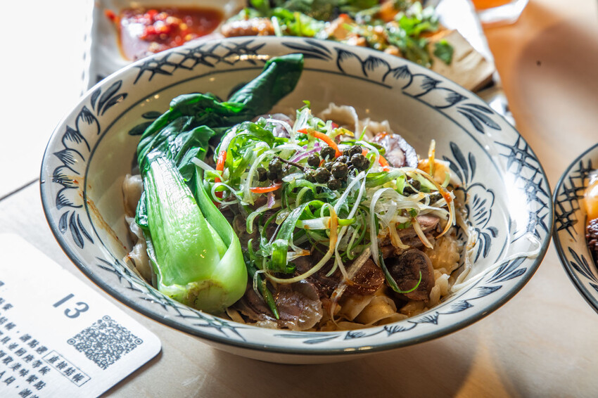 藤椒乾拌麵,強!這真的很強!以特製藤椒醬汁為基底,建議選刀削麵,吃起來Q度跟爽度都一流,有彈性的刀削麵與藤椒的香麻滋味在口中相結合,辣中帶鮮,越吃越過癮,然後裡面一樣也是給牛腱,搭配的吃口感極富層次