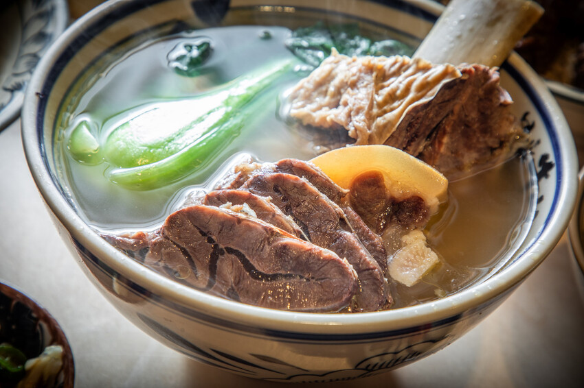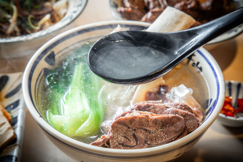 招牌清燉牛肉麵,必點!這個真的有夠強!清燉牛肉湯就是直接從那鍋充滿牛肉精華的大湯鍋原汁勺出來的,而且不僅僅牛腱而已,裡面竟然還有超大塊的帶骨牛肋排跟膠質十足的牛尾!