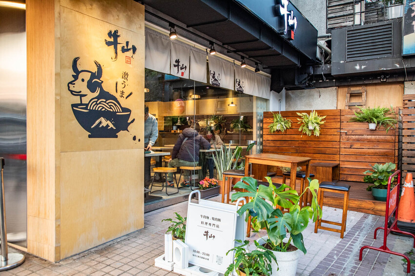 牛山清燉牛肉麵就位在桃園寶慶路上,外觀非常低調,黑色的招牌只寫了牛山二字,旁邊有一個候位休憩區,經過其實看不太出來是什麼店,還蠻好奇這些鄉親們是怎麼知道的^^”