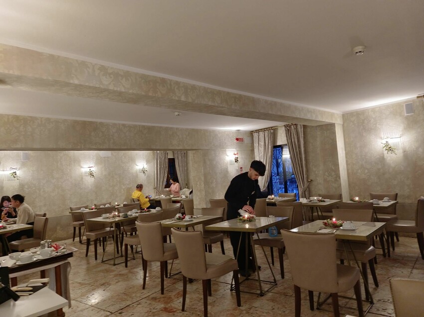 難得睡了一個好覺,第二天到一樓吃早餐,沒想到它們的服務生在每一張桌子上都點了蠟燭,天哪~浪漫威尼斯完全不是浪得虛名啊!