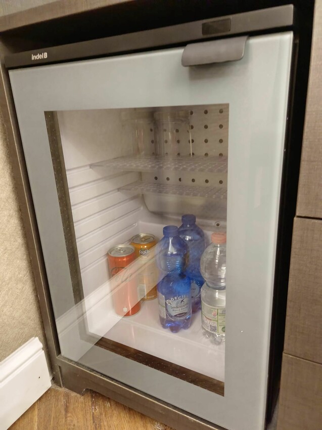 冰箱內放了幾瓶礦泉水和氣泡飲,我們有打去櫃檯問過,除了外面小茶几擺的水是免費的,冰箱內的飲料都是要另外付錢的