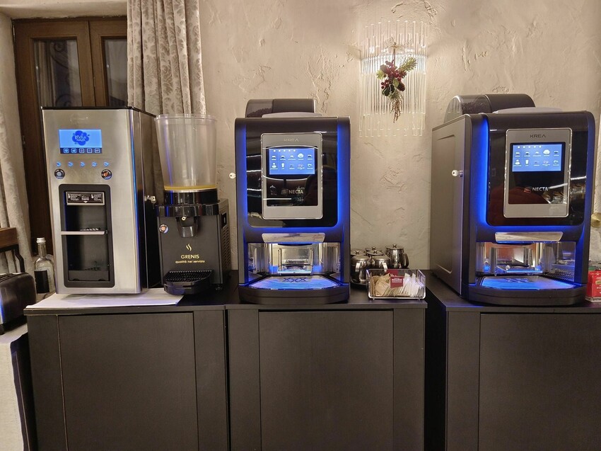 自助咖啡機有好幾台,人多時也不用大排長龍,想喝甚麼飲料都可以自己來,除了咖啡、可可、還有果汁和牛奶