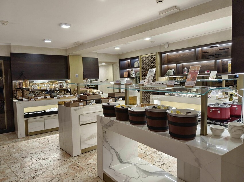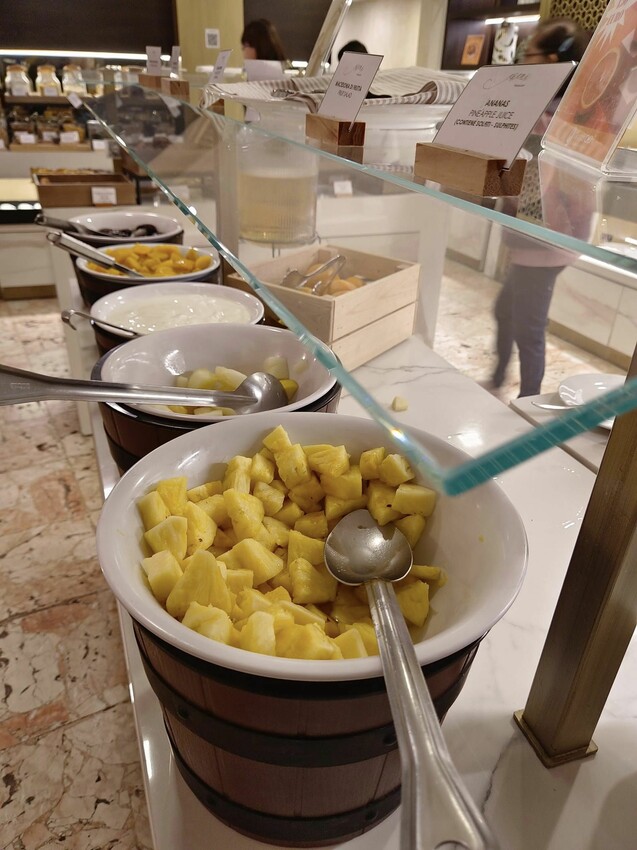 早餐的取餐檯跟用餐區在二個不同的空間,這樣用餐的人才不會被來來去去的人干擾,飯店這點規畫得還挺細心的,不過要拿餐點就要多走幾步路