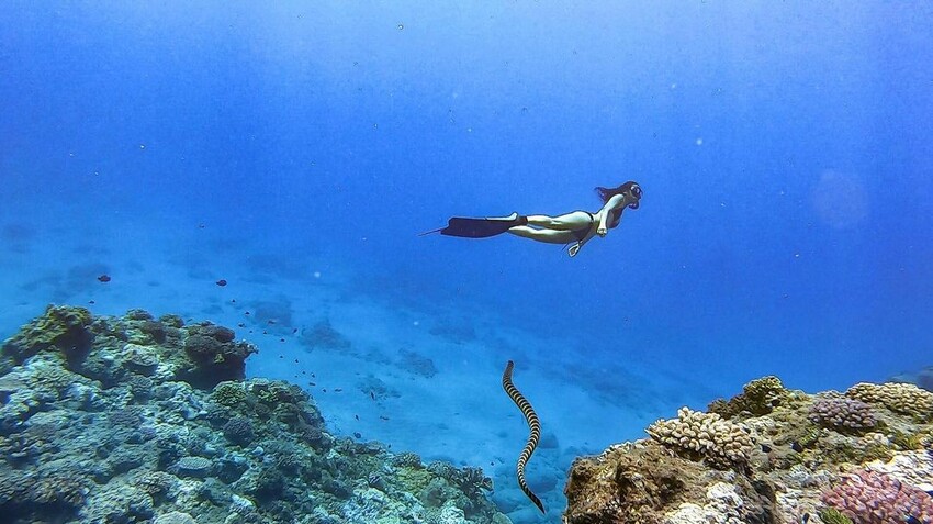也因為水質乾淨清澈、環境生態獨特,這裡能見到非常特殊的海洋生物-海蛇。喜歡潛水、浮淺的朋友們還能與蛇在水中共舞,是不是超級酷呢!話說海蛇雖帶劇毒,但生性溫馴,鮮少會攻擊人,大家大可放心唷。不過小編還是要提醒各位,東清秘境受潮汐影響海水高低不定,有時淺有時深,大夥玩水時還是要多注意自身安全。