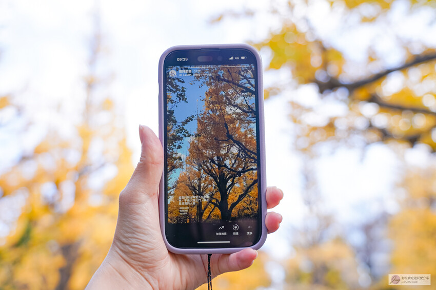 11~12月剛好是銀杏的季節,整片秋黃美景,真的是怎麼拍都美,打卡分享完全沒有問題