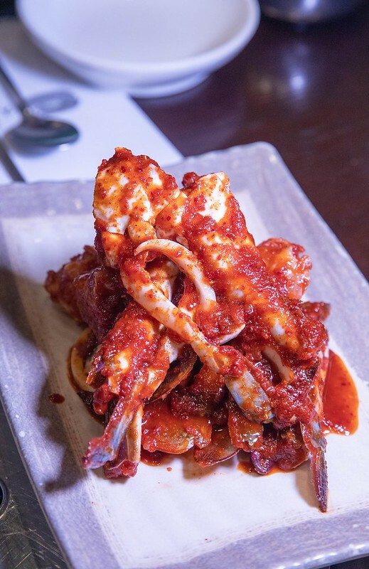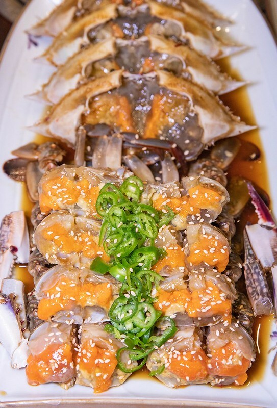 辣漬生蟹主要用的是梭子蟹,雖然肉是不那麼多,但咬在嘴裡也是飽嘴感十足,看似紅通通但其實是辣中帶甜,和醬油蟹一樣有滋有味,兩種我都喜歡,建議喜歡的朋友可以兩種都點來吃吃看。