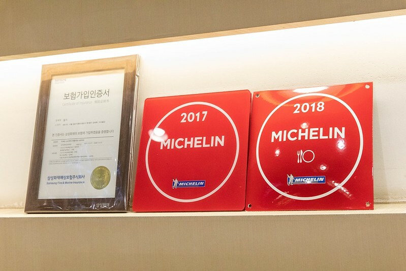 查了一下這家店不止這兩年入選米其林餐盤,但不曉得為什麼後來的牌子都沒放上來,倒是同時也得過藍絲帶藍絲帶Blue Ribbon(韓國美食評鑑,有點像韓國的米其林)一條(一星)。