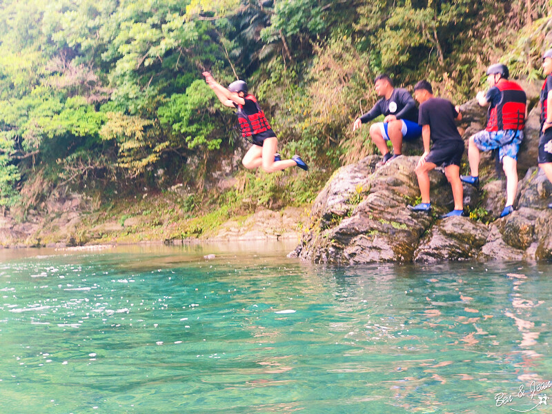 來玩漂漂河還可以體驗好玩的跳水哦,還好這一段沒有很高,但也樂趣十足啊
