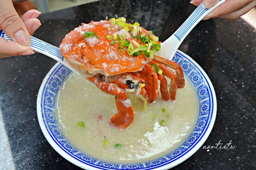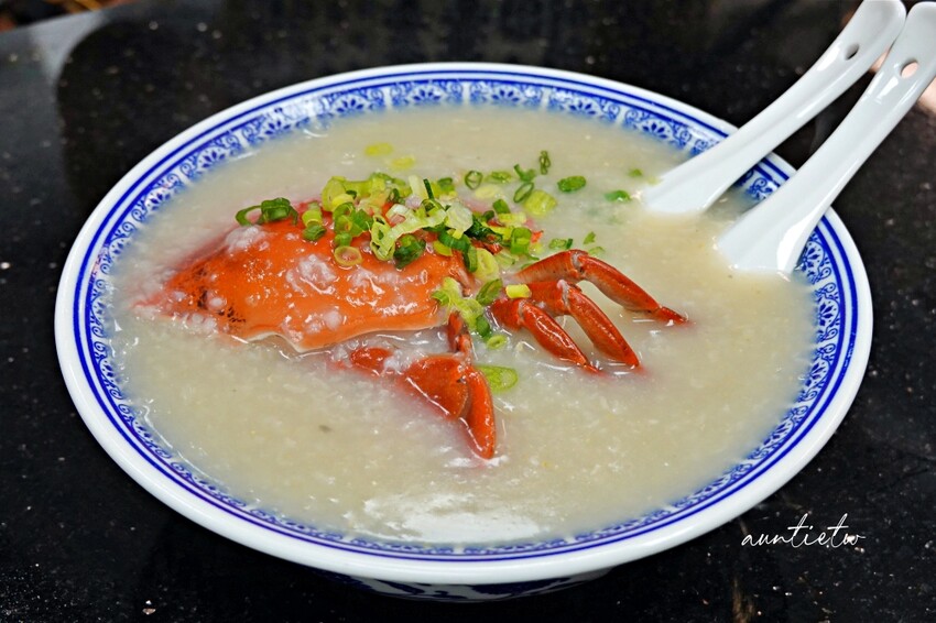 六記粥麵必點的餐點就是水蟹粥以及鯪魚球,鯪魚球其實就是魚丸,水蟹粥裡有一整隻的螃蟹,粥熬煮到吃起來沒有米粒感,就是濃郁的廣東粥風味,粥裡有海鮮的鮮甜,喝起來非常順口。