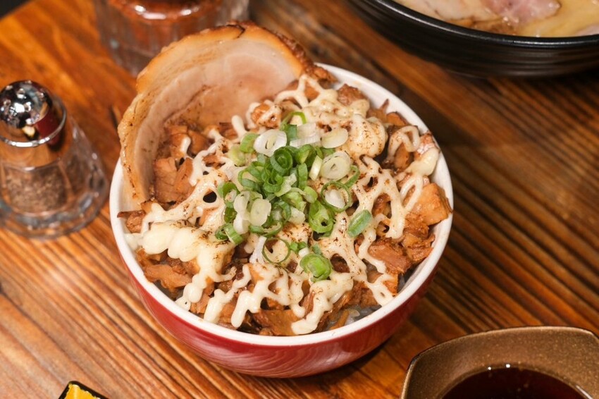 ▼讓我大驚豔的這碗鹽蔥叉燒飯,光聞到炙燒後的叉燒就口水直流,有著迷人的火烤香氣,肉質也很軟嫩,拌著美乃滋和香蔥一起吃 ,好吃到讓人瞬間秒殺!