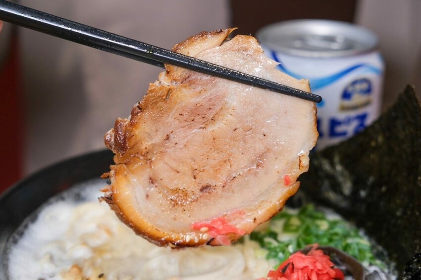 ▼特製博多豚骨拉麵配的是直細麵,嚴選三河屋製麵的麵條,口感Q硬富有嚼勁,吸附著滿滿的湯汁精華很涮嘴。