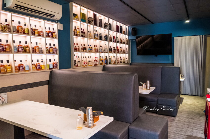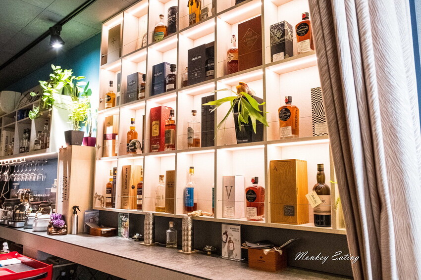 滿滿的威士忌的夢幻酒牆,讓人忍不住多拍了幾張,這是多少男人的夢想。兩側牆櫃上的酒都有興趣可以詢問,現場內用座位僅有3桌,想要來用餐建議可以提前預約喔~