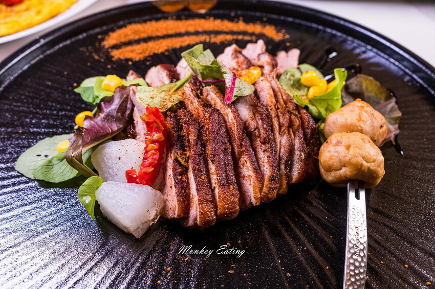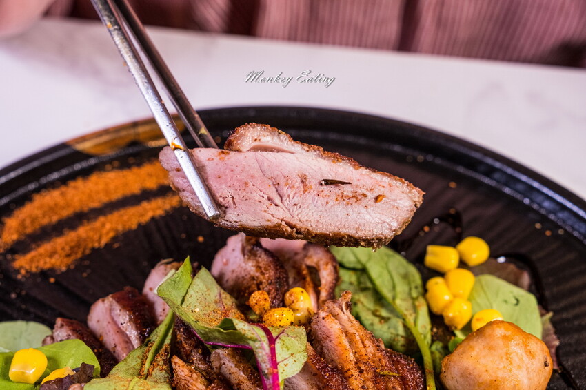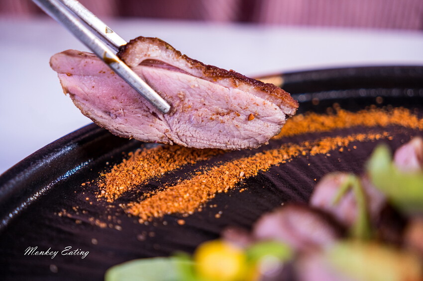 每一塊鴨胸肉都是軟嫩多汁,店員推薦可以搭配盤上的紅椒粉,帶有獨特的香料味,給鴨胸增添幾分層次風味。