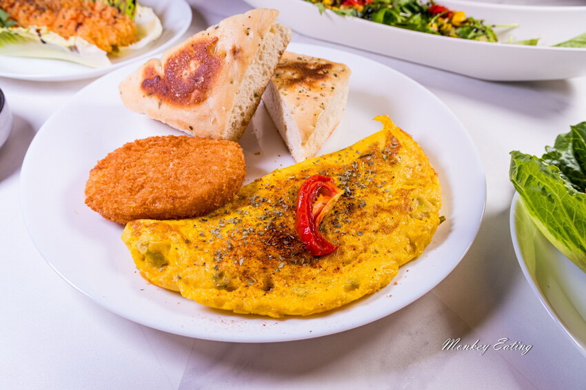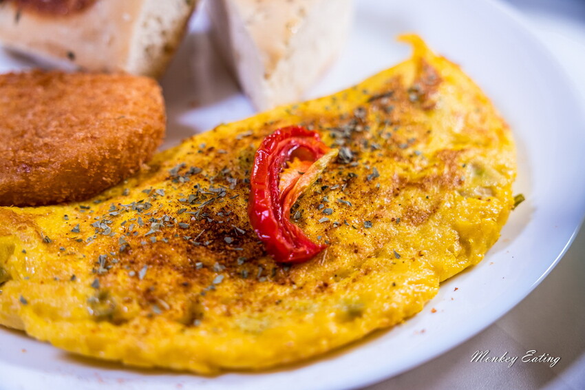 雞蛋煎的份量讓人滿足,幾乎占了整盤的一半,完全感受到老闆的誠意。也並非只有外表看到的煎蛋,裡頭居然還包了酪梨跟酸豆做內餡,這是讓我覺得驚豔的地方。除了在品嘗時感受到的層次口感,想不到酪梨酸豆也能跟煎蛋這麼合拍。