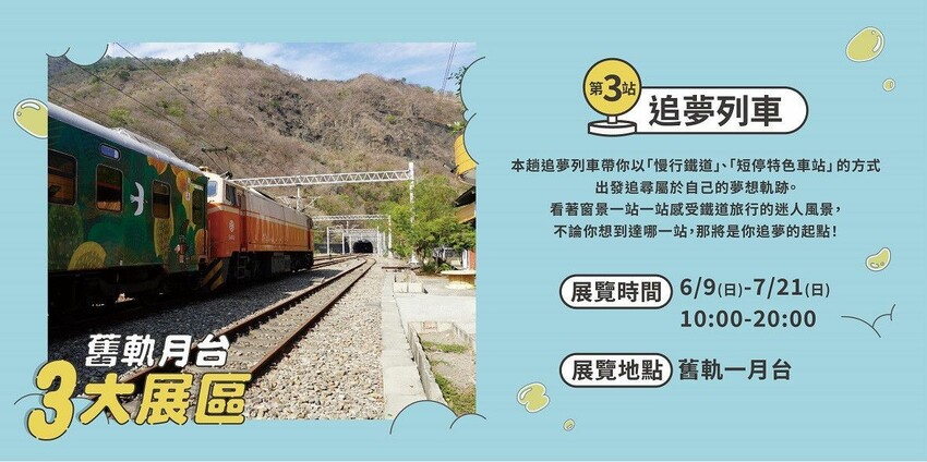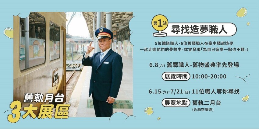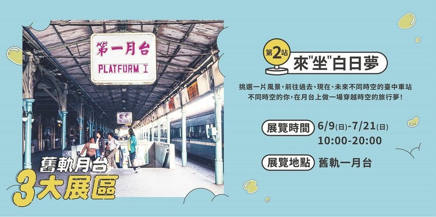 - 活動時間:臺中驛 10:30-19:30(週二公休)、舊軌月台展區 10:00-20:00 開放