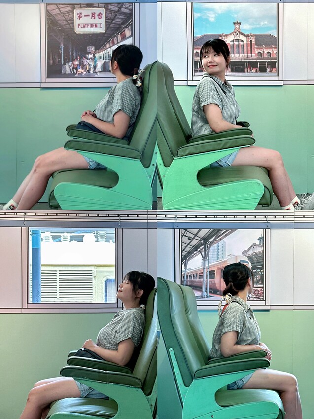 這個展區是我最喜歡的展區,坐在台鐵的座椅,可以看到以前、現在月台風景,滿滿的回憶,讓我回想起以前追火車的情景(哈!)