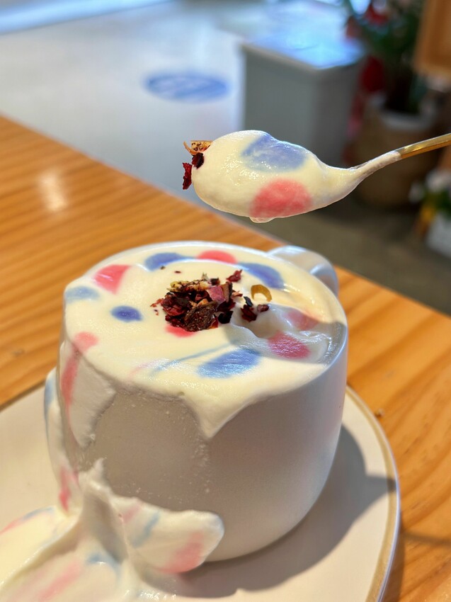 鹹甜甜奶蓋,奶味香濃,奶茶屬於茶香明顯的奶茶,甜度剛剛好,奶蓋上面有玫瑰花瓣,所以再喝的時侯,鼻子會先聞到花香再來才是順口的奶茶