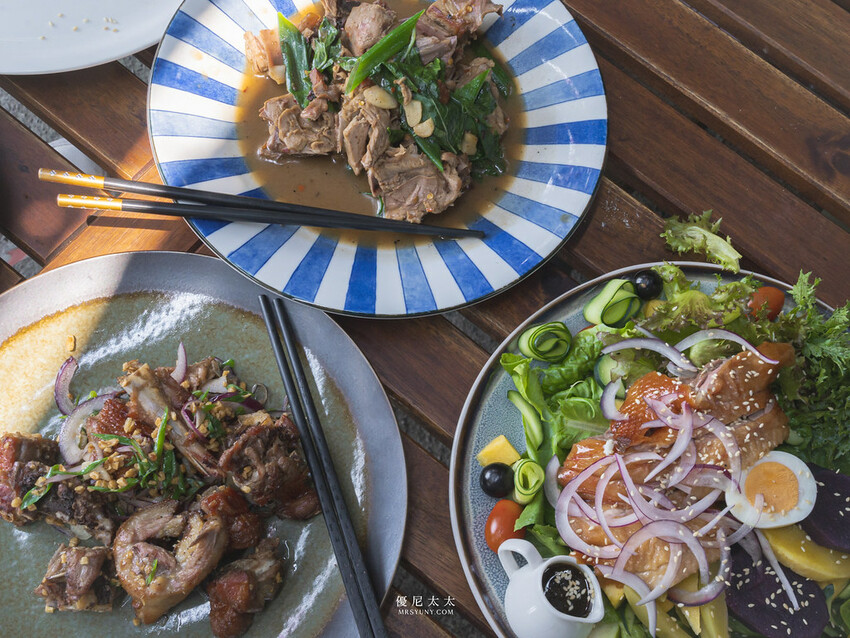 僅於週日營業的戴茶花園烤鴨餐廳(週六若是要用餐,還是可以試著預約),坐落在美麗的稻田旁,是個可以同時享受美食和田園風光的戶外雅座。位置就在呼密藍莓農場旁邊,用完餐後可以步行到採果園活動。老闆僅在週末營業,因為平日在其他餐廳工作,店內不僅提供室內座位區,還有一個老闆自己打造的散步小花園。雖然是戶外雅座,但這裡的烤鴨口味絕佳,擺盤也絕對不馬乎,每份全鴨大餐一鴨五吃只需1000元,即便是四個大人也吃不完。老闆精湛的手藝讓每一道菜都令人回味無窮,果木燻鴨片,鴨汁風味飽滿,搭配老闆自製的Q彈風味麵皮及甜麵醬,我們大家一致認同,這家的烤鴨不僅好吃,CP值也超高,可以說是口袋名單的寶藏餐廳呀!