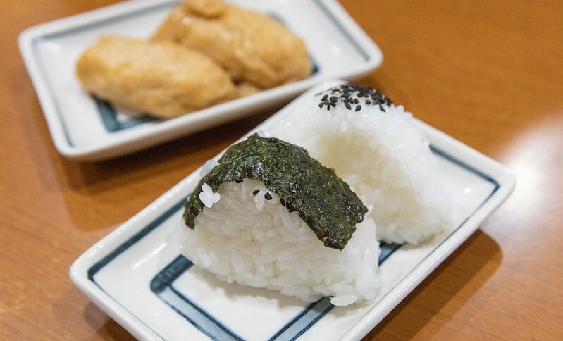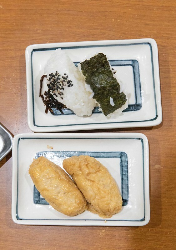 好吧,入境隨俗,既然多數的客人都有點,我們也照辦煮碗,雖然就是很簡單的飯糰,但還真就蠻好吃的,豆皮偏甜,裡面的飯就是簡單的白飯而非醋飯。