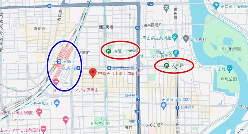 中華そば山冨士本店:岡山県岡山市北区本町5-13,電話:086-225-6147,營業時間:11:30-01:00(星期三休)