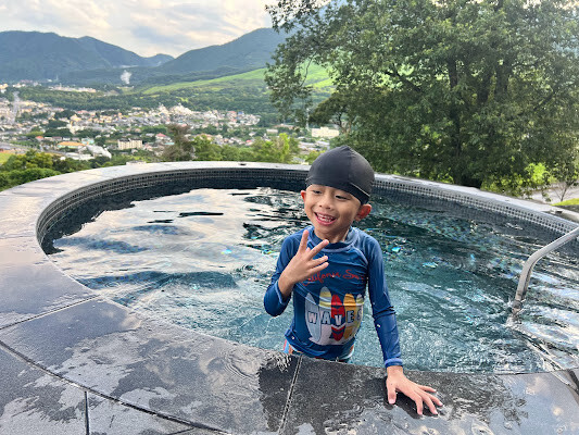 天氣好時 還可以看到世界之塔與別府塔。泳池的水溫很ok 是溫水