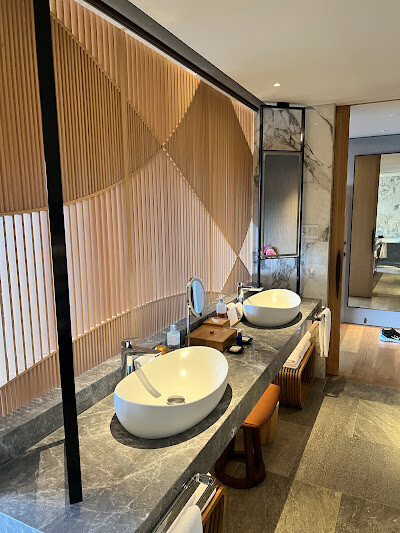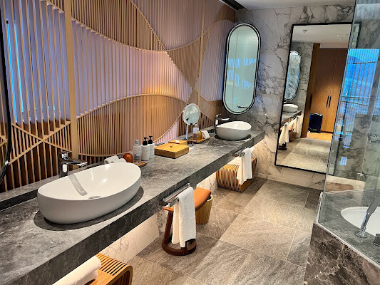兩床市景經典房房型的浴室就有雙洗手台與浴缸,空間很寬敞。
