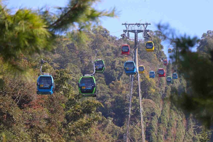 九族文化村位於南投山區,所以有許多需要爬坡的地方,自從2001年起園區有了自己的纜車,可以直接從園區最下方往返最頂端,更值得開心的是2009年日月潭纜車興建完畢,路線直接延伸到九族裡面,所以從九族文化村到日月潭伊達邵,只需要在園區最頂端搭纜車就可以直達了,全程只要10分鐘,非常方便!,除了快速以外,從九族到日月潭的這段纜車路線,更被米其林譽為三星級湖景喔,一輩子是不是一定要來搭一次呢?