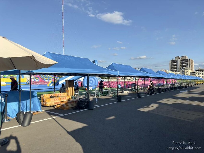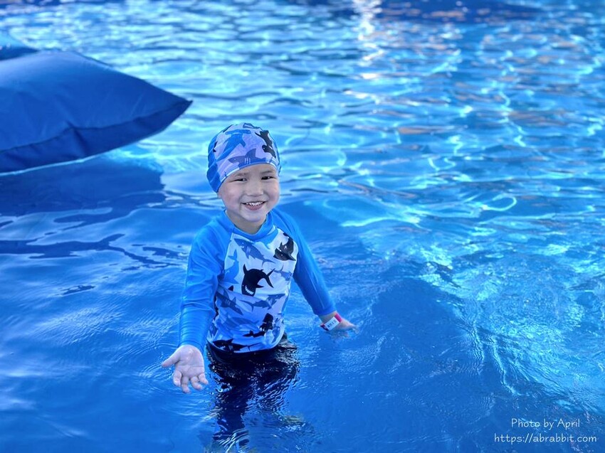 身著泳衣才能入池!2歲以下的小朋友入池請記得穿「游泳尿布」,12歲以下的小朋友都建議需要家長陪同一起入池,若家長想要在一旁「納涼」也是沒問題的喔!(我說我哈哈哈哈)旁邊有一整排的休息區,還有小吃攤位與市集,想一邊吃美食也行啦。