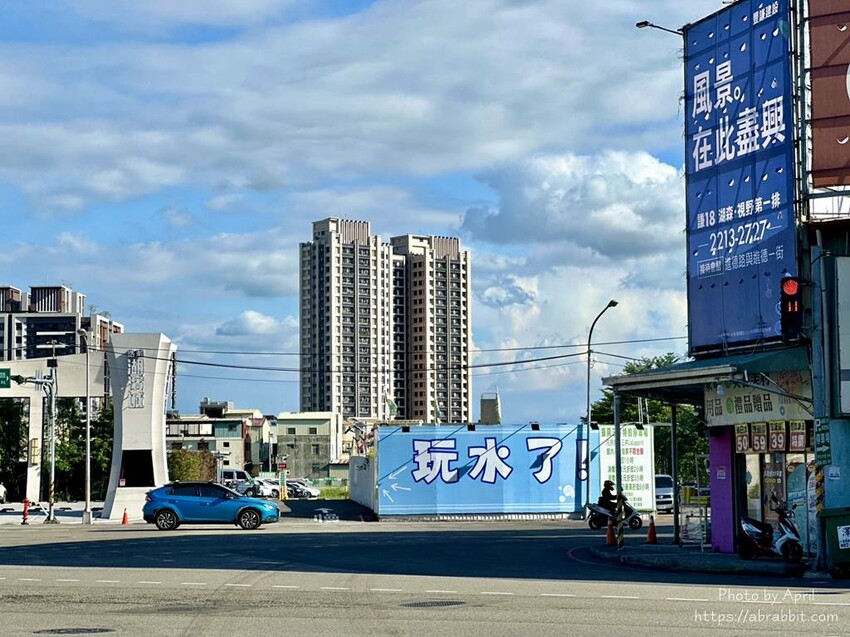 如果是開車的朋友們,很方便,看到玩水了三個大字旁邊就是停車入口!如果你是摩托車族,那要麻煩你先沿著旁邊的路往右轉繞一圈回到親子水上嘉年華的活動地點附近,那裡有個振興三井停車場,從那邊的入口進去。