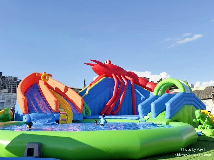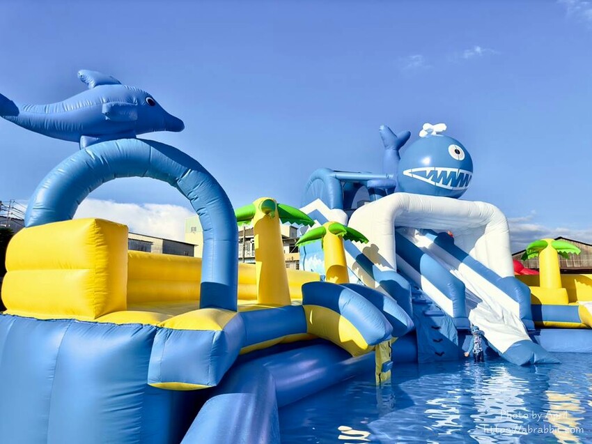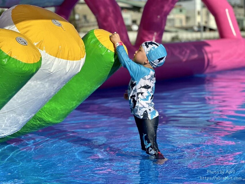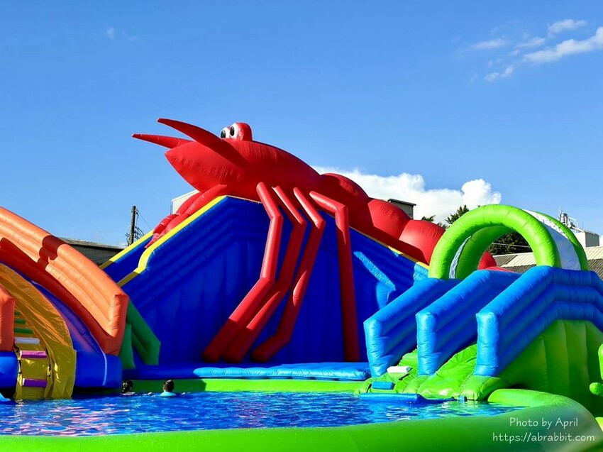 親子水上嘉年華裡面真的超多好玩的,總共有多種移動式的水樂園設施!有:雪人蹦蹦雲、鯨魚水上闖關、龍蝦滑梯組、冰雪世界、龍躍滑梯、海豚組合、火烈鳥帳篷池瘋狂泡泡池,裡面除了有6大不同主題的玩水池,每周六日還有限定的主題活動喔,例如夏日冰封、西瓜派對、槍林彈雨等等,快點來看吧!