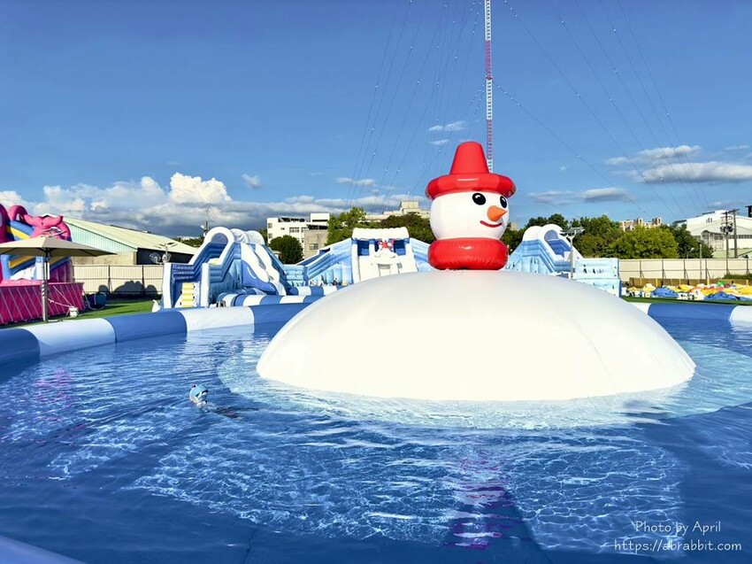 還有這個雪人旁邊粉紅色的池子是火烈鳥帳篷池瘋狂泡泡池,別看現在這樣只有水,我們來的稍早之前這邊工作人員有噴了一堆泡泡,這裡可以盡情讓小朋友們玩泡泡喔!