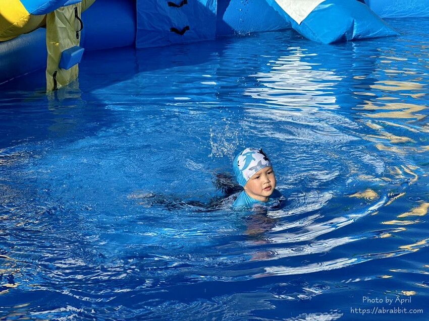 胖胖在水裡面怡然自得踢水,可以想像他長大之後應該會很熱愛游泳,可能是個運動陽光型男孩喔 (自己說XD