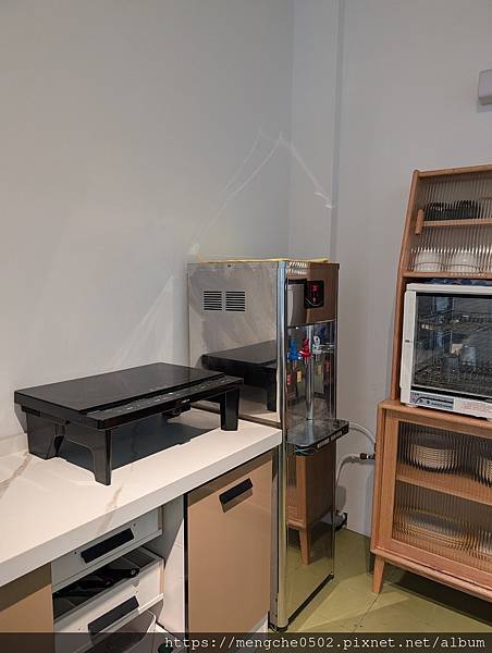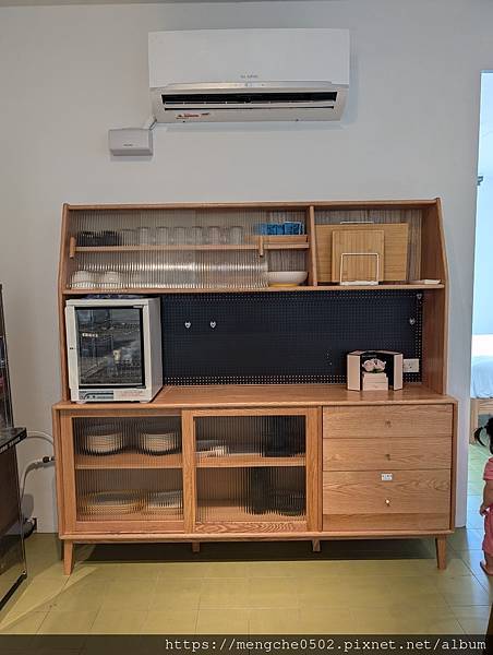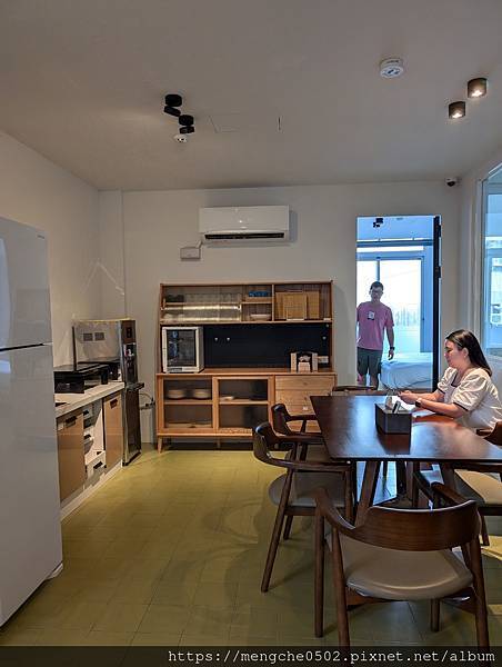 裡面還有很棒的是樓梯一上來的客廳空間,一般民宿主人是不會在這個空間裝冷氣的,可是這邊有裝,還有餐桌、餐椅、電磁爐、餐具冰、箱等設備,就像自己家一樣方便!