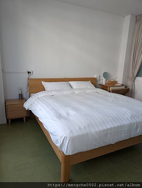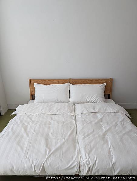 他加的雙人床我們原本以為只是床墊,但是加的是貨真價實的床!上面放了比較薄的床墊,但是看起來比床墊舒適很多啊!