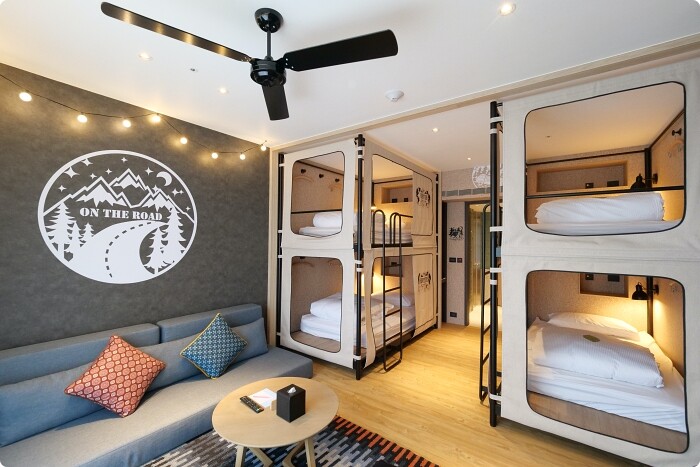 這間一進門,蠻有「背包旅館」的感覺,二張上下鋪分列左右。