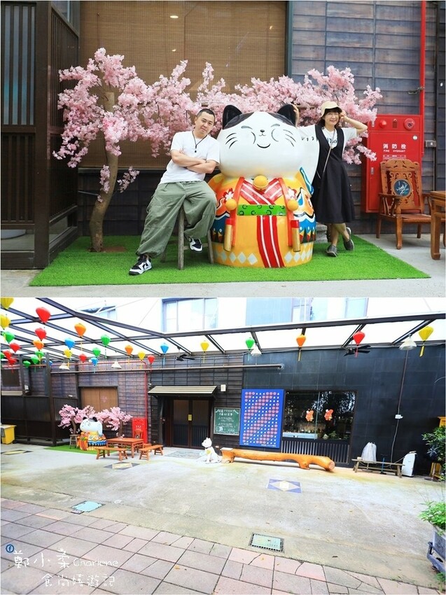 戶外空間還有櫻花樹、吊椅、造型可愛貓咪、鯉魚池及南瓜馬車等,