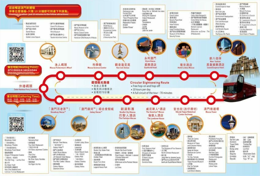 🚌澳門開篷觀光巴士服務時間:09:30-17:30🚌澳門開篷觀光巴士車票優惠: