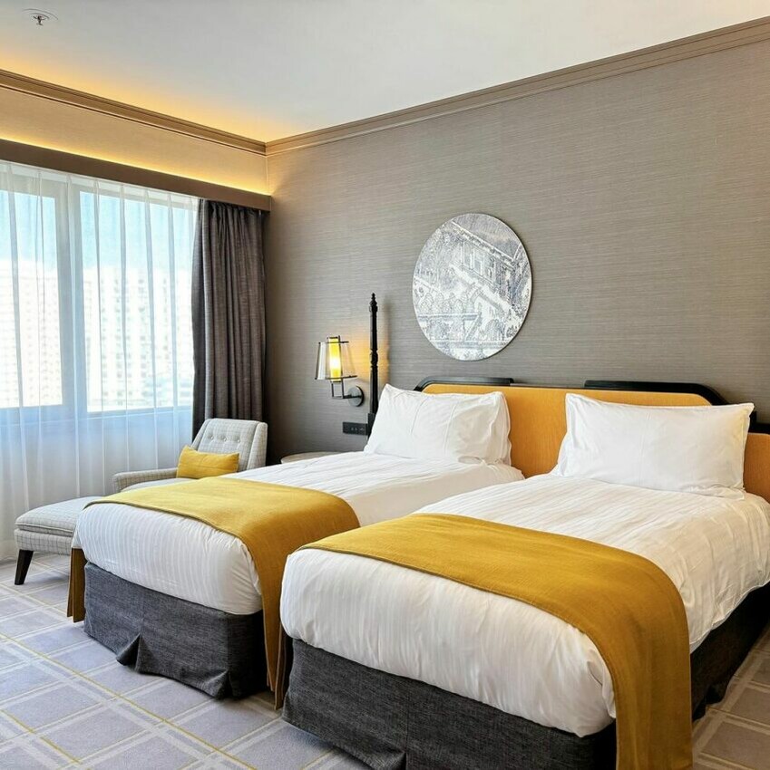 「澳門君悅酒店」位在新濠天地購物中心內,彙集了美食、購物、娛樂於一身,是一間服務商務及休閒旅客的五星級飯店。寬敞的房間、舒適的床鋪,還有景色超美、能看見水舞表演的窗戶。交通方便,乘坐輕軌到路氹東站就可以到飯店,游泳池、健身房也很優質,早餐的美味程度也受到許多旅客的讚許。