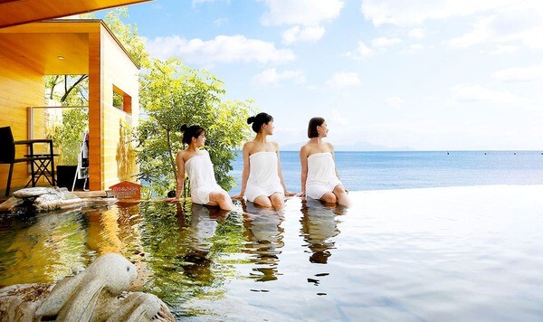 位於長崎近郊島原半島的島原溫泉飯店南風樓,擁有度假氛圍感滿滿的房型和優質風呂,是當地唯一主打能邊看海邊泡湯的溫泉飯店。內部的風呂溫泉池也的確不同凡響,造景融入天然環境,浴池旁擁有開闊的視野,就像在海中泡湯一樣。