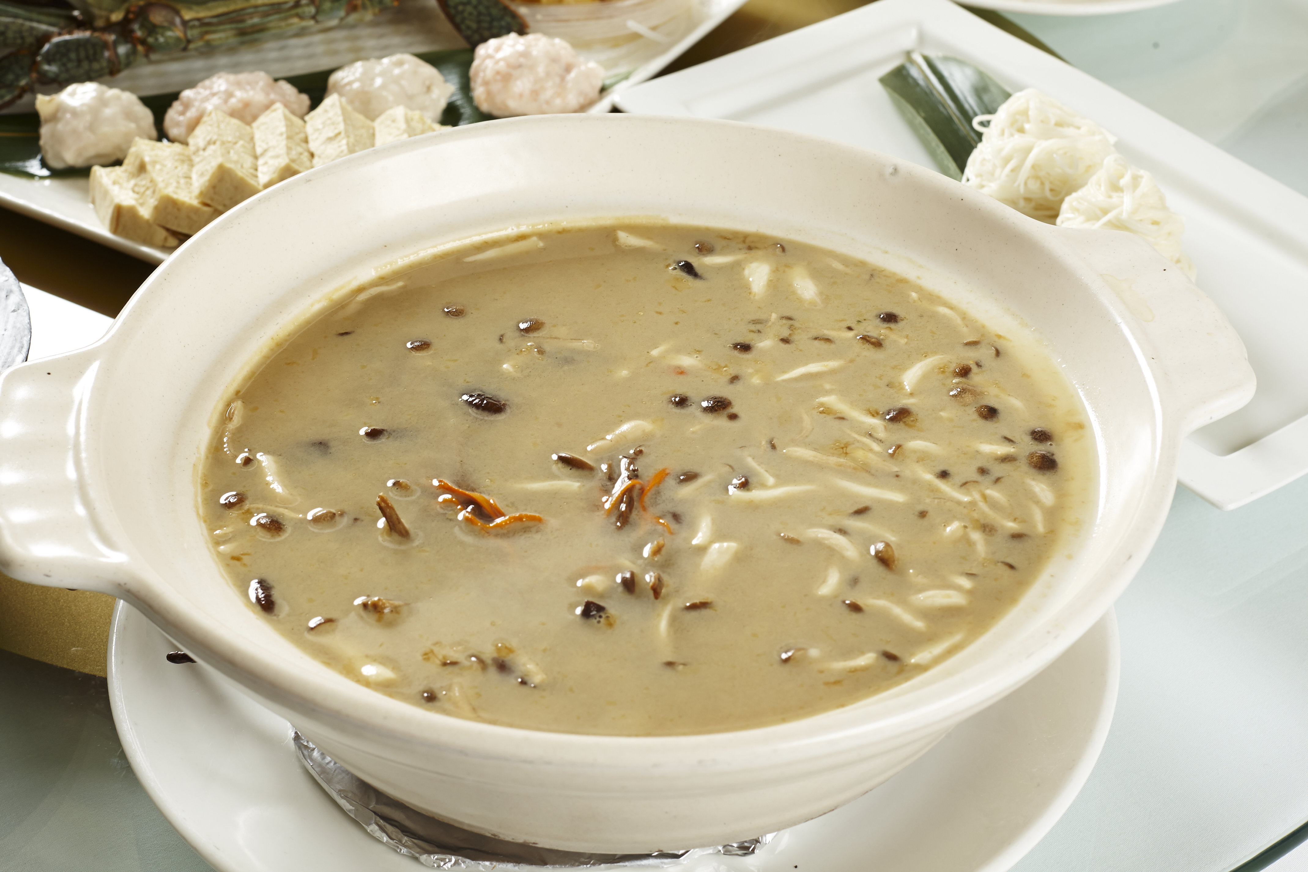 適逢秋冬微涼之 際,留園精心設計出適合雙人享用「黃金蟲草什菌鍋」,精選新鮮蟲草,搭配紅棗、枸杞與多達18種中藥材熬煮而成,及多款新鮮菌菇如雪白菇、鴻喜菇、茶樹 菇、杏鮑菇、金針菇,大量時蔬入鍋,別出心裁結合老鴨與豬大骨費時長達八小時所熬燉之濃白的稠厚、濃郁湯底。